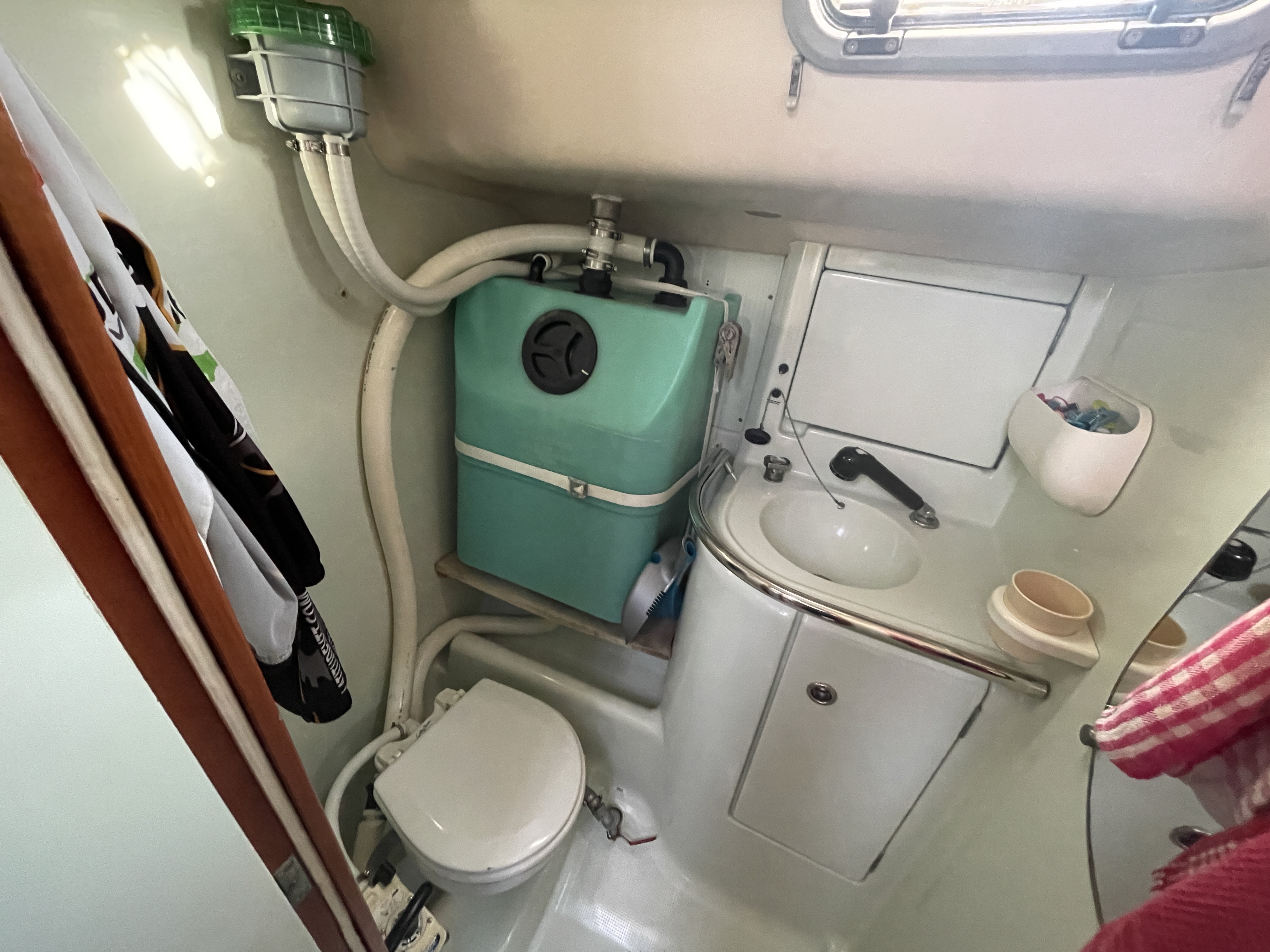 Toilette : 2 wc douche ( caisse eaux noires sur wc arrière babord)