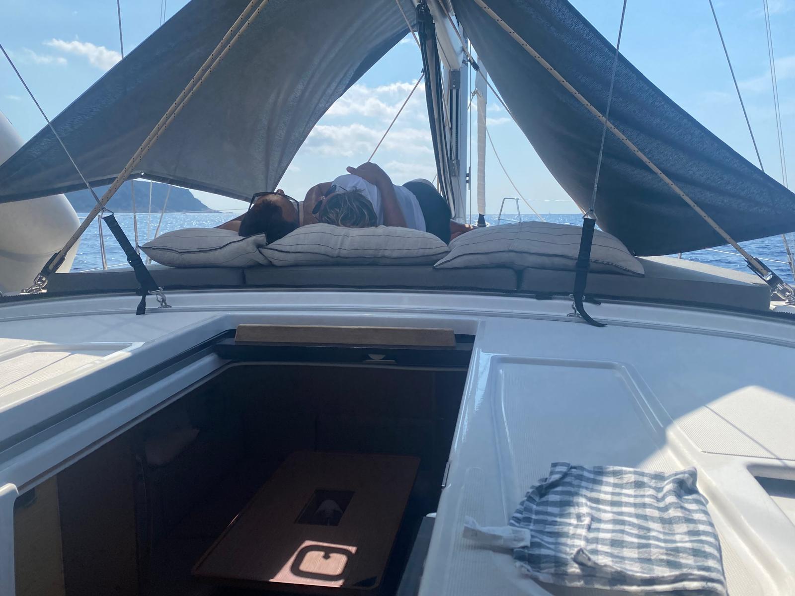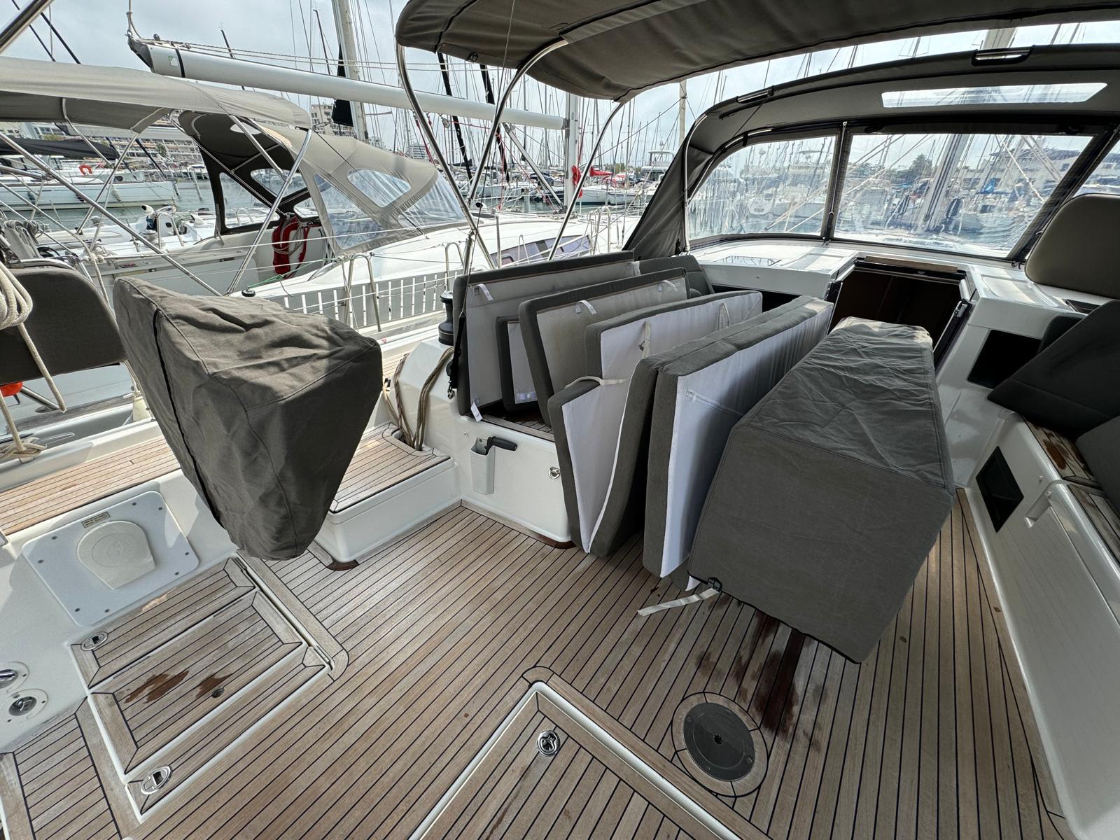 Coussin sur cockpit extérieur avec voile d’ombrage sur rail