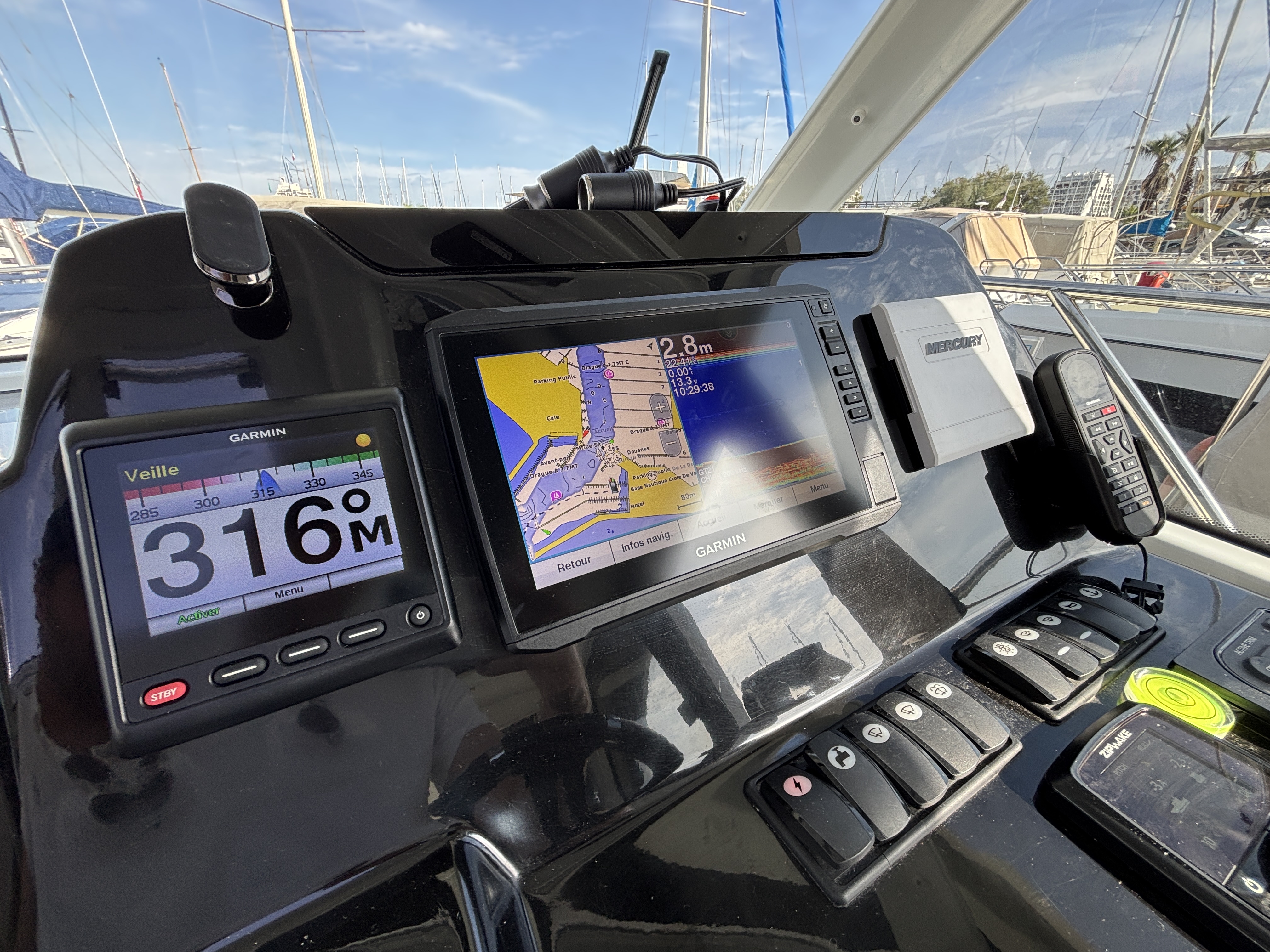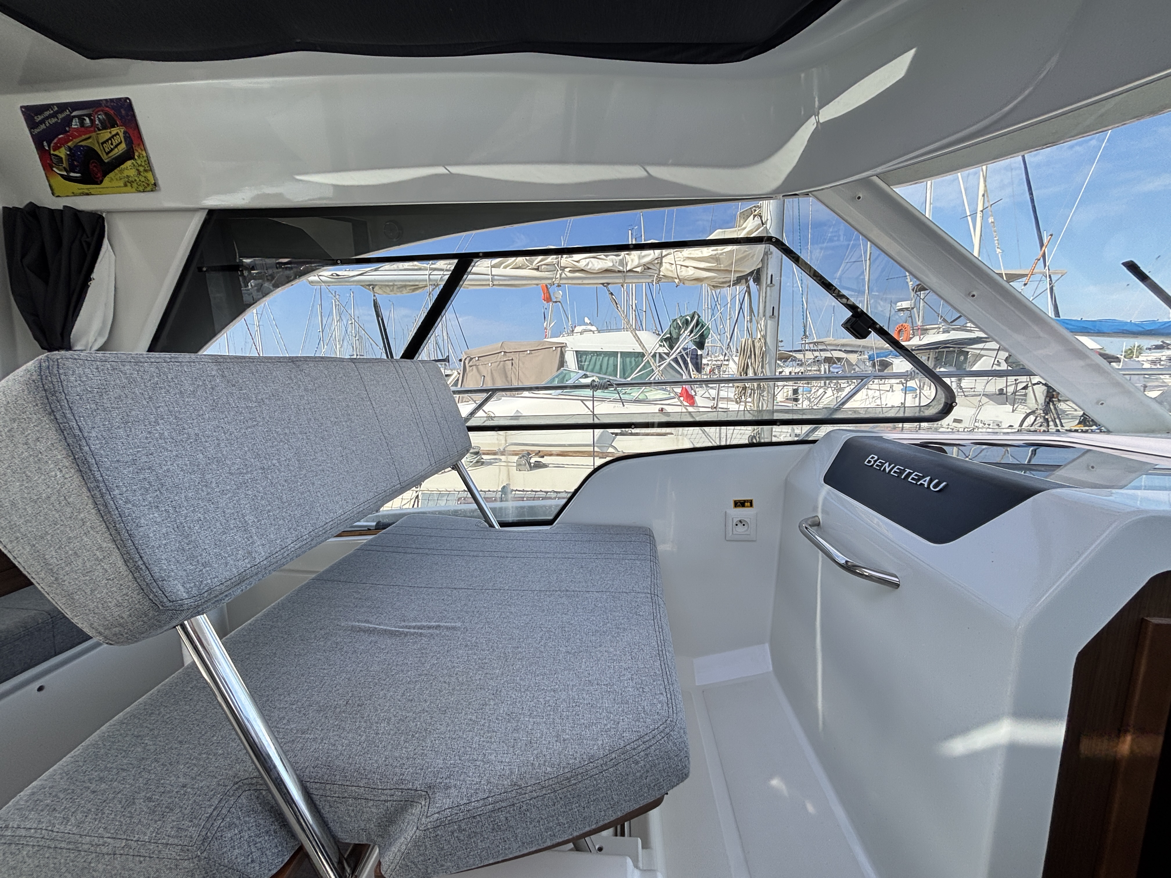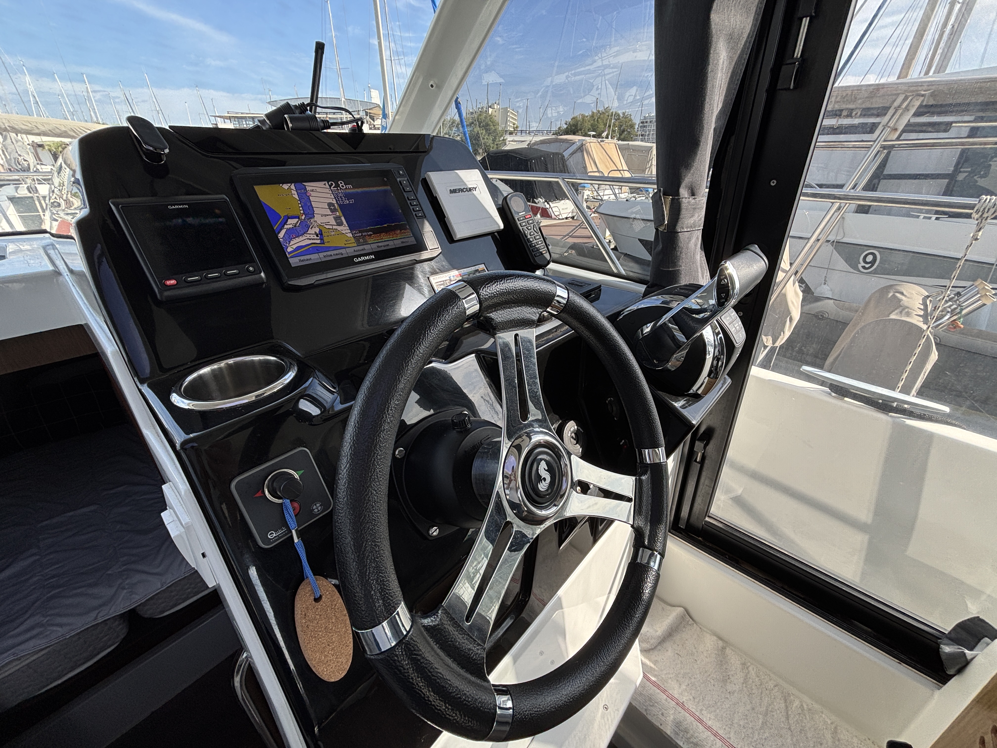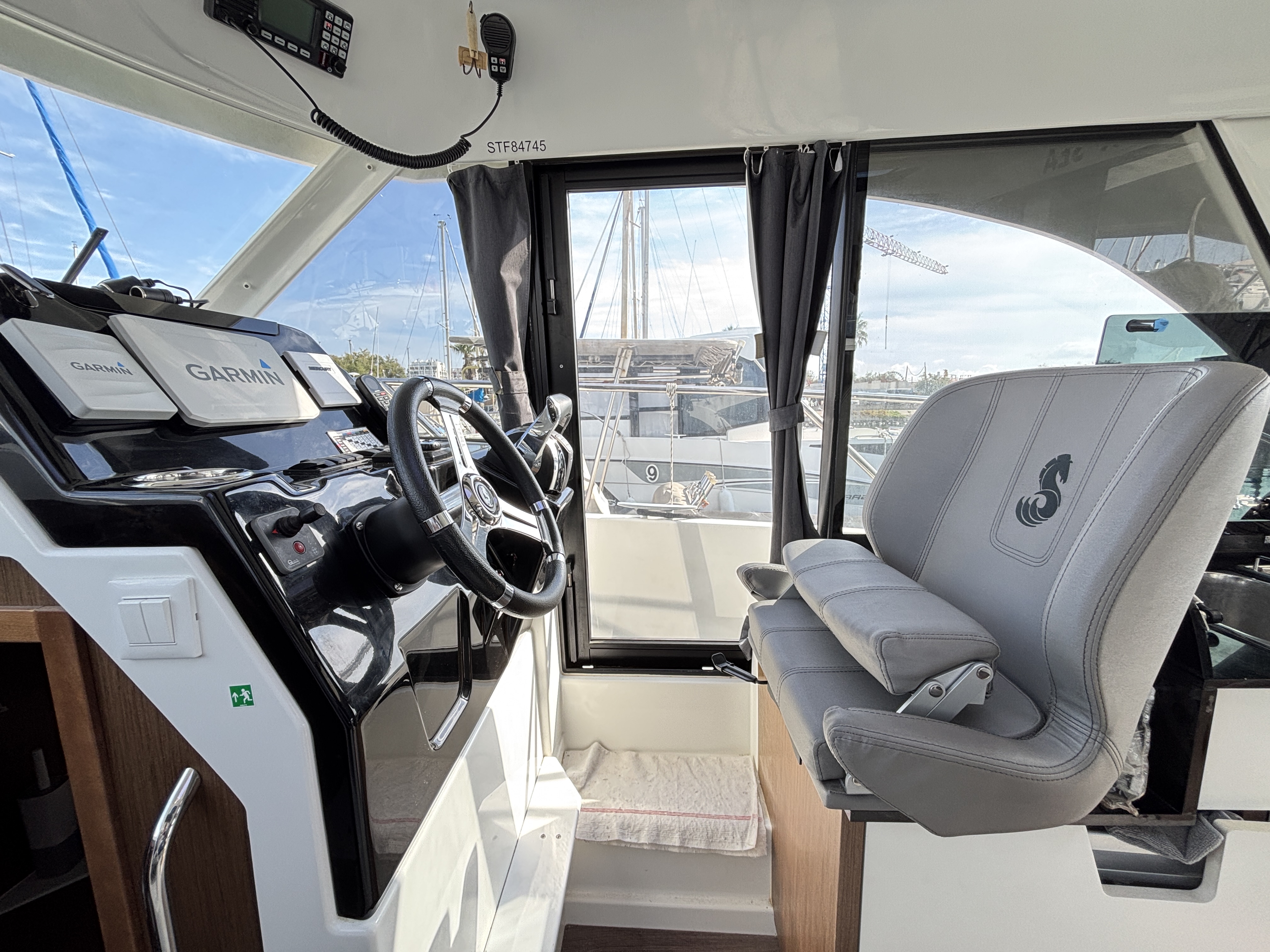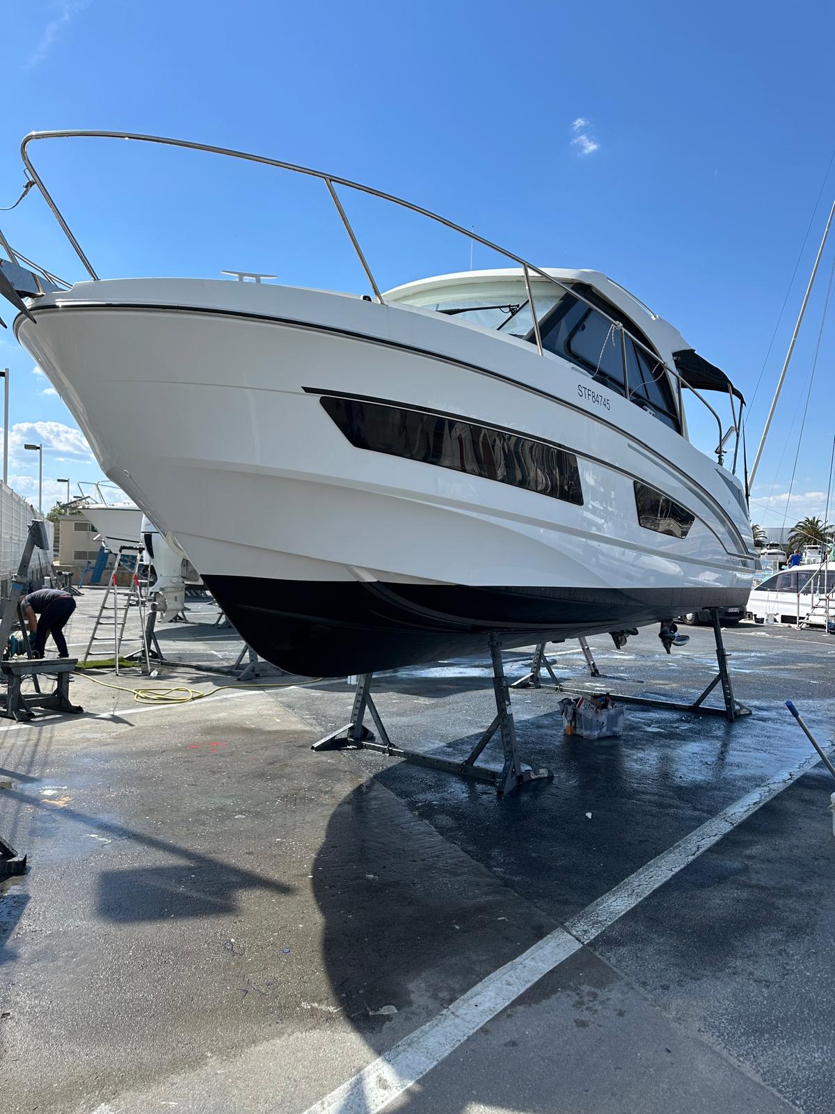 Ce bateau est idéal pour des sorties en famille, des croisières côtières ou des week-ends prolongés sur l’eau. Il dispose d’un équipement haut de gamme : panneaux solaires pour une autonomie accrue, propulseur d’étrave facilitant les manœuvres au port, flaps Zipwake pour un confort de navigation amélioré, ainsi qu’une électronique complète signée Garmin (GPS traceur, sondeur, VHF).